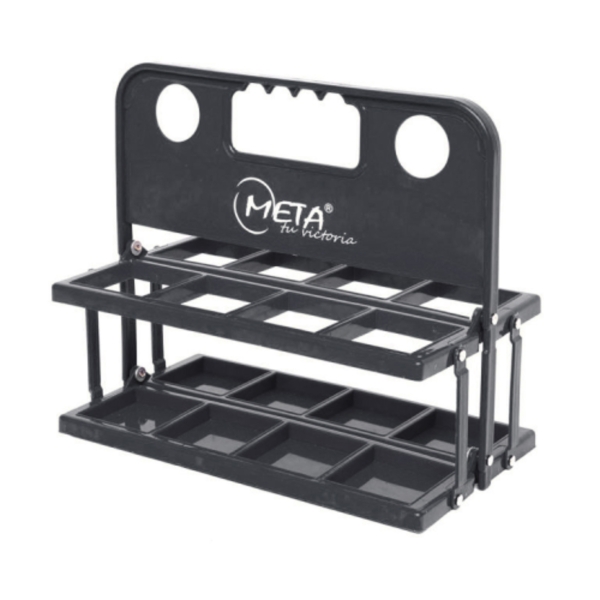 O suporte para garrafas de plástico, durável e com um design elegante, foi concebido para transportar até 8 garrafas com uma capacidade até 750 mm. O seu design inclui a capacidade de se dobrar, o que o torna muito prático para armazenamento e transporte quando não está a ser utilizado. Cada um dos 8 recessos tem dimensões de 8 x 8 cm, o que proporciona um encaixe seguro para as garrafas. Este suporte para garrafas é prático e fácil de utilizar, oferecendo uma solução eficiente para o transporte de garrafas com estilo e durabilidade.
