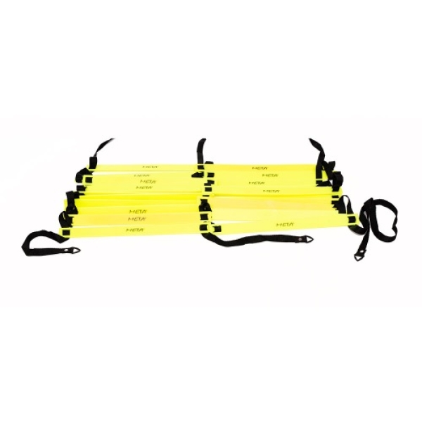 A escada de velocidade e agilidade dupla está fabricada em tela de nylon, com degraus planos ajustáveis de plástico que tem 4mm de grossura e 3,5cm de largura. A escada tem 4 metros de comprimento e vem com 10 degraus. O desenho da escada permite uma ampla gama de exercícios, além disso incluí uma bolsa para facilitar o armazenamento.