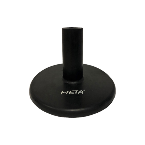 A base para bastões foi concebida para instalar bastões com um diâmetro de 25 mm. Com um peso de 1,5 kg, é feita de borracha de alta resistência. A base tem um diâmetro de 24 cm e uma altura de 14 cm. Este produto é versátil e pode ser utilizado tanto em salas como em campos.