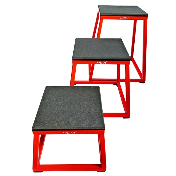 Conjunto de 3 plataformas pliométricas concebidas para desenvolver a velocidade, a potência e aumentar os saltos verticais. Este tipo de treino centra-se na transição rápida ou "explosiva" da extensão muscular para a contração em saltos repetidos especializados. Cada plataforma do conjunto é feita de aço resistente e tem uma parte superior antiderrapante para proporcionar estabilidade durante os exercícios. As 3 plataformas do conjunto têm tamanhos e alturas diferentes (30 cm, 45 cm e 60 cm), permitindo a progressão da intensidade do treino. Além disso, as plataformas podem ser empilhadas para facilitar o transporte ou a arrumação, o que as torna muito práticas e versáteis.